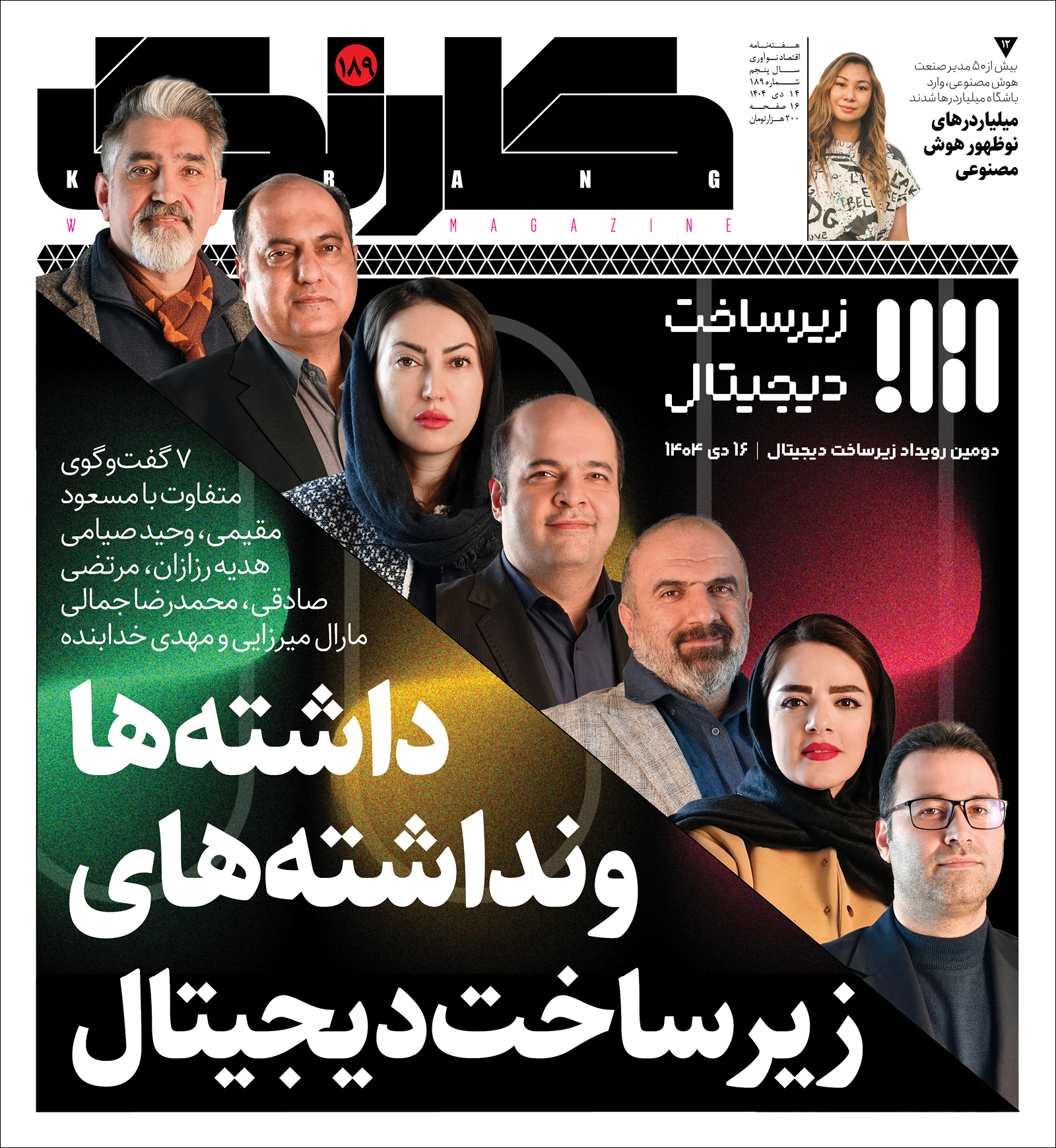 شماره ۱۸۹ هفتهنامه کارنگ با تصویر روی جلد اختصاصیافته به سلسله گفتوگوهای تخصصی درباره چالشها و فرصتهای زیرساخت دیجیتال کشور منتشر شد. در آستانه به دومین رویداد تخصصی زیرساخت دیجیتال ایران که در ۱۶ دی ماه ۱۴۰۴ برگزار خواهد شد، با فعالان و کارشناسان حوزه سختافزار و زیرساخت دیجیتال، به بررسی چالشها و فرصتهای کشور پرداختهایم.